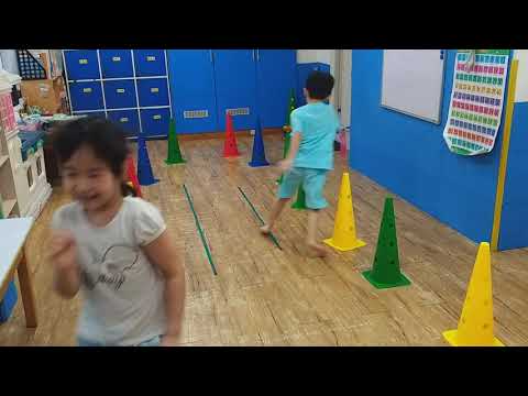 今天我們要來和三角錐玩遊戲唷~看我們跑得多快呀~