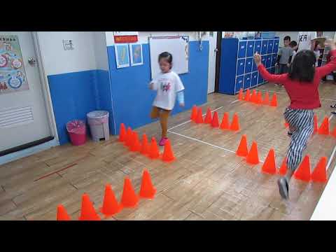 今天準備了「三角錐」來玩遊戲,請小朋友用跑的、跳的、爬的通過三角錐哦