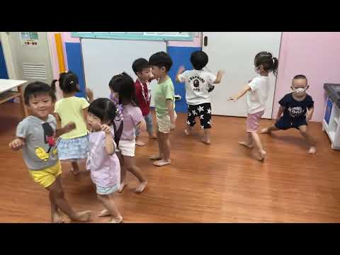 第一天上學。請小朋友用肢體動作展現歌詞內容哦!